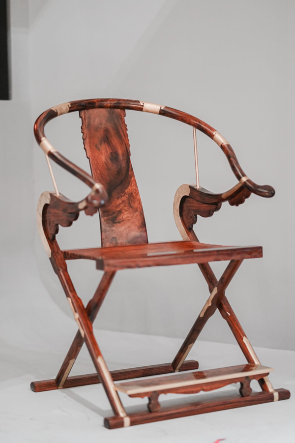 藝術品是有形的,但藝術所傳達的精神和文化是無形的,因此,當文物保護專家、建筑師非遺傳承人和設計師齊聚一堂之時,“物”的邊界,絕不止于此。作為一個擁有系統(tǒng)收藏并專注于深度研究的博物館,本次主題巡展甄選多件館藏級代表作:《海南黃花梨交椅》《小葉紫檀一鳴驚人禪椅》《紫檀嵌花鳥百寶椅幾》《紫檀西番蓮條案》《有束腰帶托泥透雕卷草紋圈椅》《紫檀靈芝中堂》,多維度展現(xiàn)了傳世藏品所應具備的歷史價值、文化內(nèi)涵、藝術價值和審美價值。