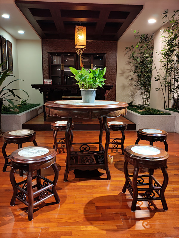 在原材料的選擇上,一品居石面圓臺(tái)采用了大紅酸枝這一名貴木材。大紅酸枝質(zhì)地堅(jiān)硬、紋理美觀,具有極高的收藏價(jià)值。