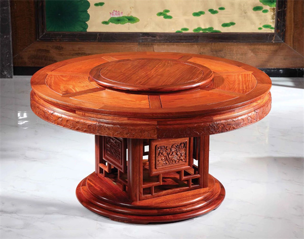 今天,我要為大家介紹的是大果紫檀的禪意東方150圓餐臺,它不僅是一件實(shí)用的家具,更是一件充滿藝術(shù)氣息的藝術(shù)品。