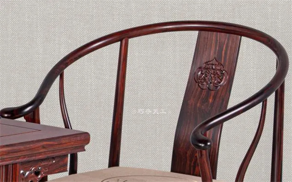 椅子的設計同樣講究,既融合了圈椅原器的設計,又進行了創(chuàng)新,椅背上也同樣雕有雙龍戲珠圖案,與茶桌的風格相得益彰,整個組合擺放在一起,給人一種氣韻生動的感覺。