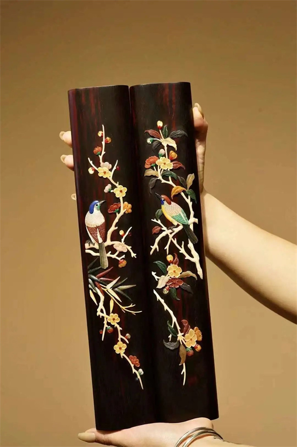 它們或鑲嵌于木器之上,或融入漆器之中,組成了一幅幅花卉翎毛、人物山水的圖畫,仿佛將大自然的鬼斧神工與人類的匠心獨(dú)運(yùn)完美地結(jié)合在了一起。