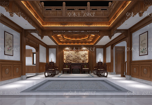 華彩琉璃、古韻紅木、天然大理石、精雕壁畫(huà)