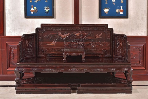 這款沙發(fā)采用大紅酸枝這一珍稀木材制作,質(zhì)感深沉,彰顯出尊貴與非凡。經(jīng)過匠人們多道工序的精心打磨和雕刻,每一個(gè)細(xì)節(jié)都透露出精湛的工藝和獨(dú)特的藝術(shù)魅力。