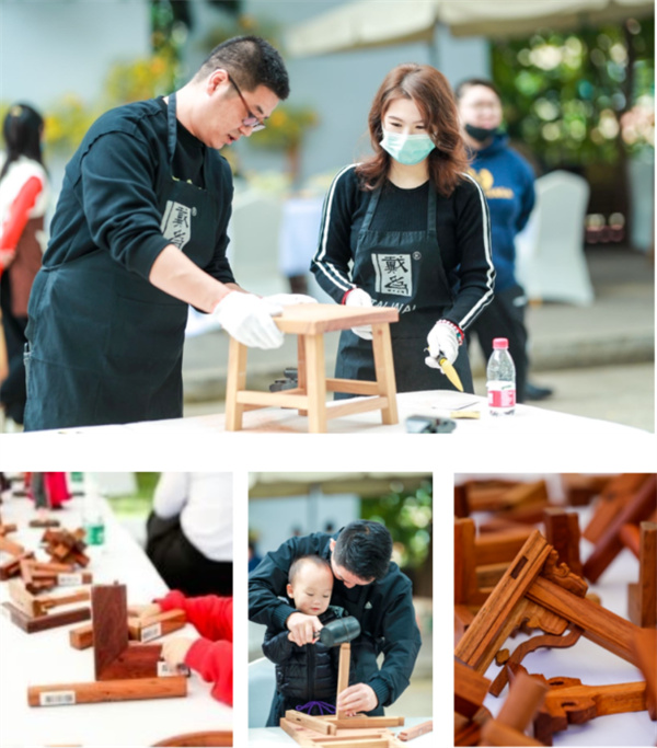 邀請(qǐng)木匠大師、雕刻大師、生漆大師、刮木大師現(xiàn)場(chǎng)示范紅木家具的制作過程,并向觀眾講解技藝要點(diǎn),然后大師們現(xiàn)場(chǎng)與小朋友合力完成一件木作品(如凳子、盆等),讓國(guó)家非遺傳承守護(hù)從青少年開始。