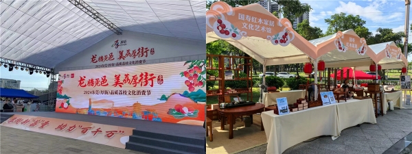 6月21日下午,為期三天的龍騰莞邑美“荔”厚街——2024東莞(厚街)品質(zhì)荔枝文化消費節(jié)在厚街體育館廣場及龍閣山公園正式啟動。位于厚街的東莞市鴻普軒家具有限公司(以下簡稱“國壽紅木”)作為非物質(zhì)文化遺產(chǎn)——國壽廣式紅木家具制作技藝的傳承單位,攜一系列有嶺南氣息的紅木家具與紅木精品文創(chuàng)亮相,閃耀這一文化消費盛會。