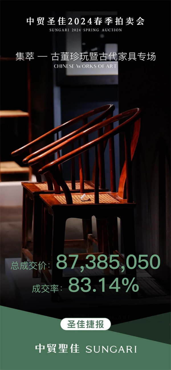 在藝術(shù)品拍賣的舞臺上,紅木家具一直以其獨特的魅力吸引著人們的目光。6月12日,中貿(mào)圣佳2024春季拍賣會-古董珍玩暨古代家具專場的成功舉辦,再次證明了紅木家具在市場上的重要地位和深遠影響力。此次拍賣會總成交額高達8738.505萬元,成交率高達83.14%,這一亮眼的成績無疑為紅木家具市場注入了新的活力。