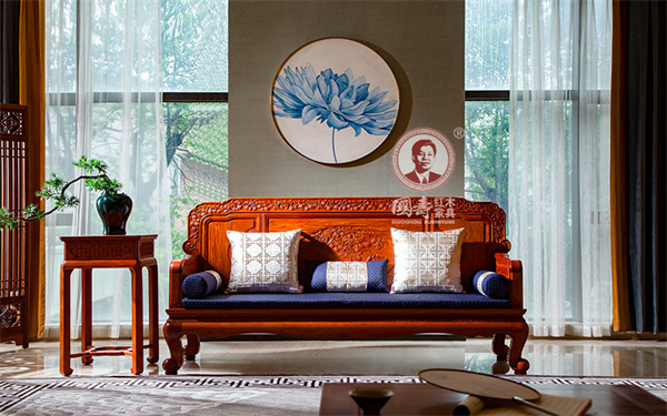 而雕刻工藝更是“廣府壹號沙發(fā)”的一大亮點(diǎn)。浮雕和圓雕相結(jié)合的手法,使得靠背和扶手處的圖案栩栩如生,仿佛每一筆都充滿了生命力。荔枝作為嶺南風(fēng)情的代表,被巧妙地植入了雕刻圖案中,賦予了沙發(fā)獨(dú)特的文化韻味。這種對傳統(tǒng)文化的傳承和發(fā)揚(yáng),使得“廣府壹號沙發(fā)”不僅僅是一件家具,更是一件藝術(shù)品。