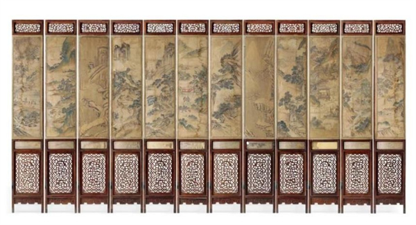 北京保利2024春拍 清早期 黃花梨螭龍福祿壽紋框人物故事圖圍屏(12扇)