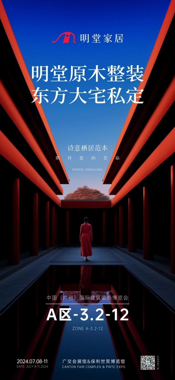 明堂家居將參加7月8日-7月11日舉行的中國(廣州)國際建筑裝飾博覽會,現(xiàn)場將展出明堂原木整裝東方大宅私定空間,展區(qū)位于A區(qū)3.2-12,誠邀各位來賓蒞臨參觀。
