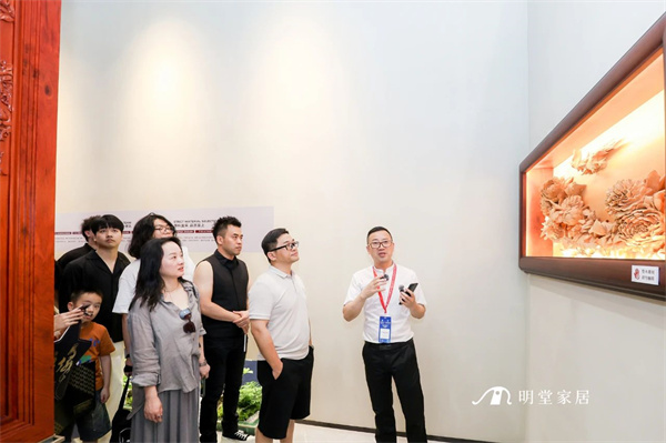 展會期間,明堂家居整裝營銷總監(jiān)王力親自接待了由知名設計師及媒體組成的探展團,為探展團詳細介紹了明堂家居的品牌歷史與設計理念。