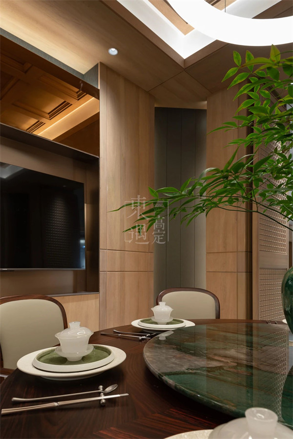 東遇高定設(shè)計(jì)的餐桌,精選圓潤木材,鑲嵌整塊圓形奢石,完美融入大宅寬敞空間。簡約而不失格調(diào),它見證著家庭的成長,記錄著每一次歡笑與淚水,讓平凡的日子因這份相聚而熠熠生輝。