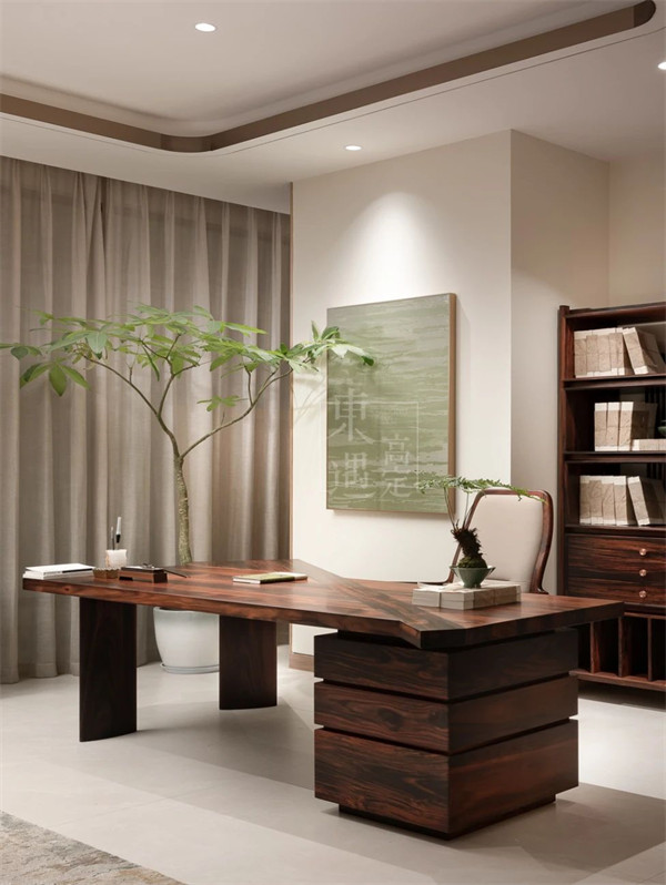 東遇高定在美學(xué)上追求極致,書桌每個(gè)細(xì)節(jié)都力求完美。從色彩搭配到材質(zhì)選擇,都經(jīng)過反復(fù)推敲和精心設(shè)計(jì),因此給人帶來強(qiáng)烈的審美享受。