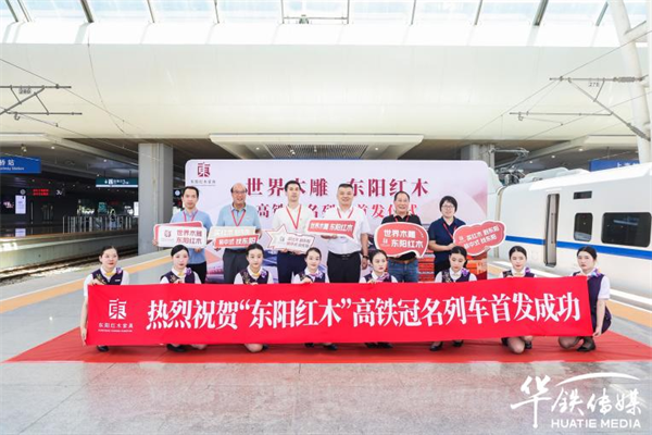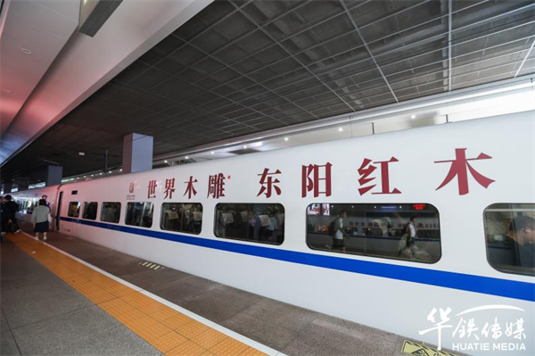“世界木雕 東陽紅木”高鐵冠名列車首發(fā)儀式在上海虹橋站隆重舉行。東陽市市場監(jiān)督管理局(東陽市木雕紅木家具產(chǎn)業(yè)發(fā)展局)黨委委員、副局長朱躍軍出席儀式并發(fā)表重要講話。卓木王董事長杜承三作為東陽市木雕紅木家具龍頭企業(yè)代表受邀參加此次儀式。