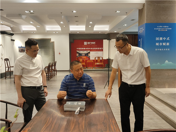 石立峰主席與石擁軍總經(jīng)理、竇琦柳總經(jīng)理圍繞“新中式紅木的當代設計”展開討論