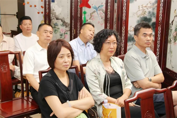 臻藝女紅品牌工作室創(chuàng)始人、書香泉城品牌推廣“怡家書吧”主理人劉怡,濟南市圖書館古籍文獻部主任徐騰飛,《儒風大家》主編、山東孔子學會理事、山東省文化創(chuàng)意設(shè)計行業(yè)協(xié)會監(jiān)事長李路,山東省青年美術(shù)家協(xié)會主席團成員、泰禾藝術(shù)空間創(chuàng)始人、中國城市雕塑家協(xié)會會員劉虎,中國古陶瓷學會會員、山東省博物館學會陶瓷專業(yè)委員會專家委員、綠寶石藝術(shù)陶瓷館館長朱東明,鼎石(山東)地產(chǎn)董事長、鳳熙書院總裁高山,山東巧奪天工家具有限公司銷售總監(jiān)陳樹娟,濟南廣播電視臺《紅木視界》導演侯國璽等嘉賓出席。