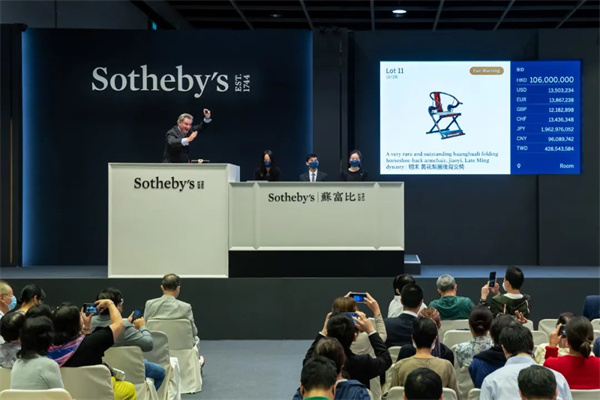 次年,中國(guó)香港蘇富比秋拍“何鴻卿爵士私人典藏中國(guó)歷代藝珍晚拍(一)”專場(chǎng)中,明代晚期黃花梨圓后背交椅以1.24億港元成交,不僅刷新了世界坐具拍賣紀(jì)錄,更穩(wěn)固了紅木家具在全球藝術(shù)品市場(chǎng)中的尊貴地位。