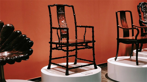 有形亦有韻,將“千磨萬(wàn)擊還堅(jiān)勁,任爾東西南北風(fēng)”的氣勢(shì)刻畫進(jìn)作品之中。這股氣勢(shì)從椅腳“竹根”自下而上節(jié)節(jié)勁拔,至扶手處與后腿竹干交圈,合力升騰直上,隨即又節(jié)奏變緩,靠背板的弧線與雕花,又讓整張椅子逐漸舒解、溫柔起來(lái),既似“百煉鋼”,又如“繞指柔”。
