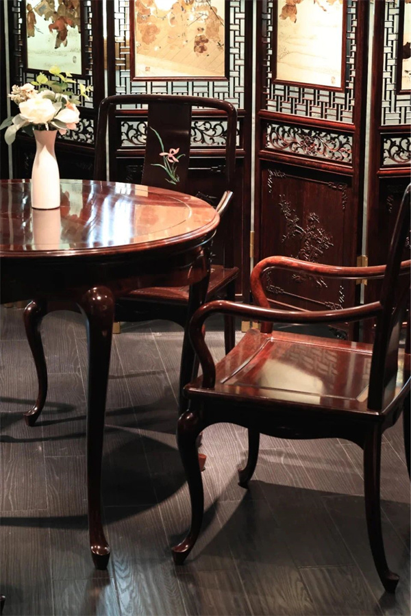 紅木家具以貴妃榻、蘭花椅柔美舒適的姿態(tài)贊美了女性之美,以屏風(fēng)營(yíng)造私密而藝術(shù)的家居氛圍,以?shī)y匣承載女性對(duì)美的追求與自我表達(dá)。