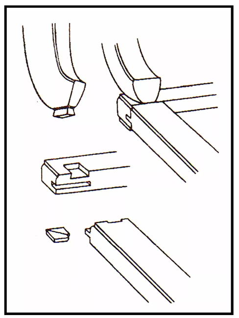 方形結(jié)體的家具如杌凳、書桌、供桌等,下面的托泥是四根木材用格角榫攢邊法造成的。