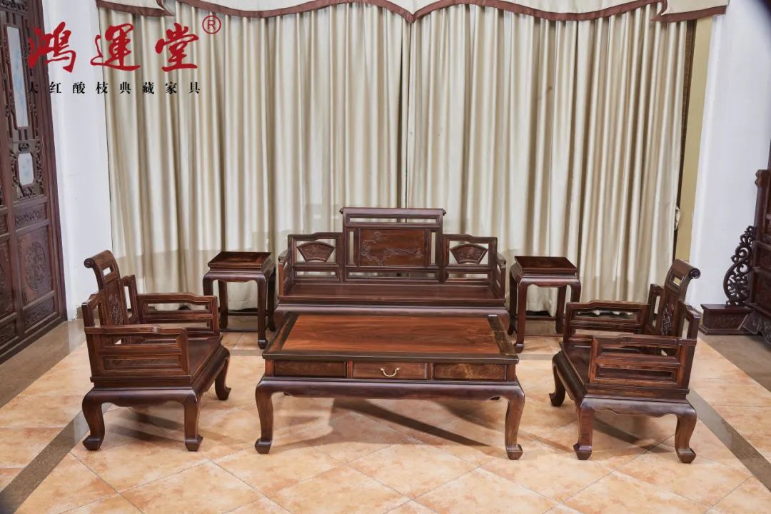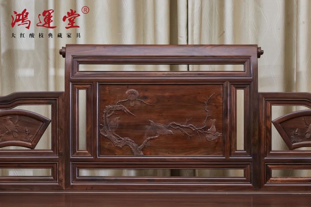 此款沙發(fā)以榫卯工藝拼接,再搭配大紅酸枝細膩的紋理和溫潤的木質,為沙發(fā)注入了低調沉穩(wěn)的美感。