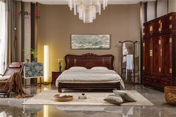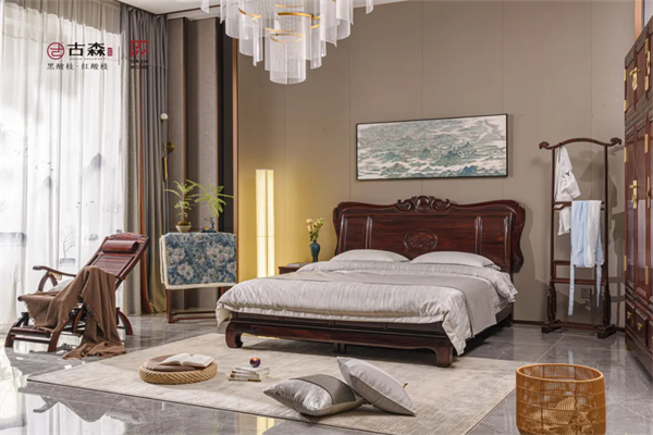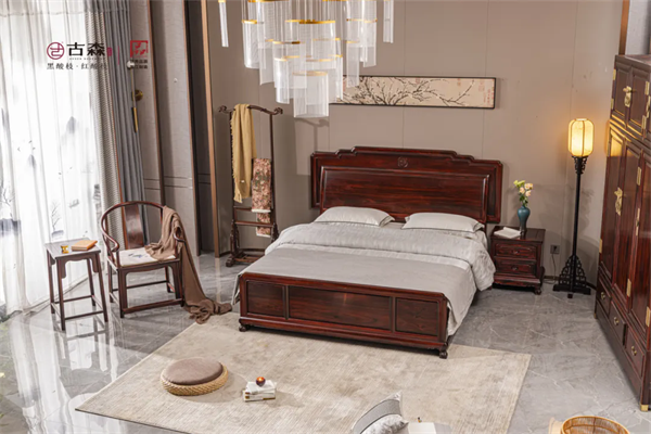 古森紅木《黑酸枝雙鳳朝陽大床》