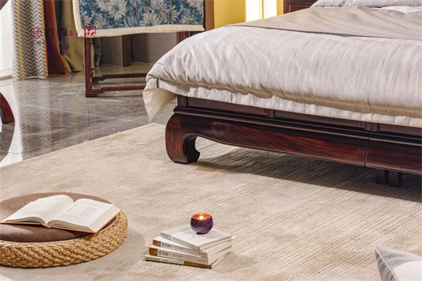 古森紅木取材為黑酸枝和紅酸枝,黑酸枝木色溫暖沉靜,華貴內(nèi)斂,給人以古色古香的感覺;紅酸枝呈微紅、紫紅色,且混有黃玫瑰、粉紅和紫色的色調(diào),紋理密直通達(dá),結(jié)構(gòu)細(xì)膩,光澤鮮亮,為空間賦予更靈動的氣韻,秀逸雅致,從視覺上給人以賞心悅目的感覺。