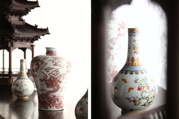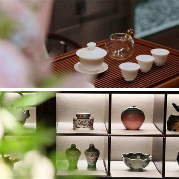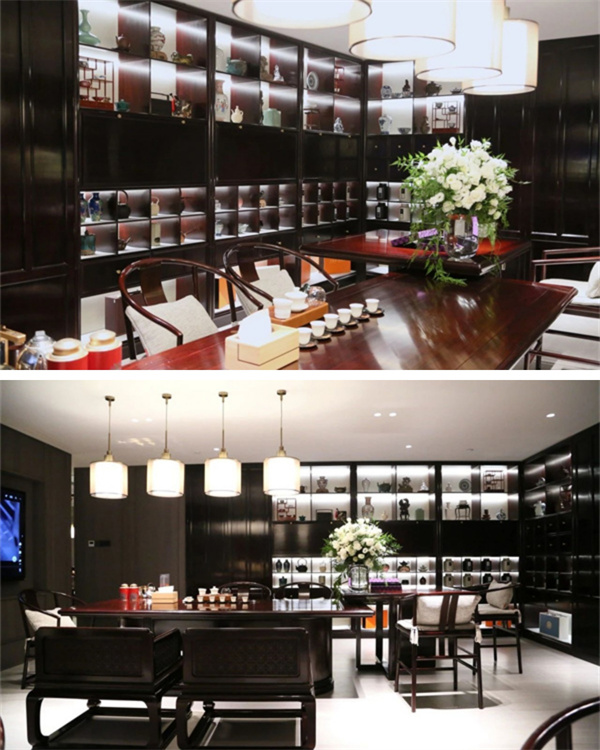 而精美的瓷器,則以其溫潤的質(zhì)感與優(yōu)雅的造型,成為了茶空間中一道亮麗風(fēng)景線。它們與屏風(fēng)、絹畫等中國傳統(tǒng)元素相互映襯,共同構(gòu)建了一個(gè)和諧而富有詩意的茶室空間。