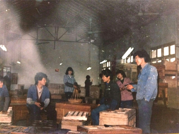 浙江省工藝大師、李忠信紅木董事長(zhǎng)李忠信(左一)學(xué)徒時(shí)照片