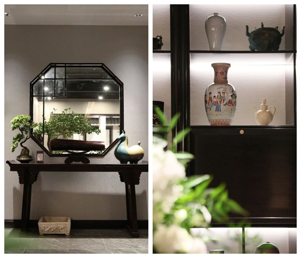 中式器物、茶具等點(diǎn)綴其間,如繁星映夜,增添生機(jī),展現(xiàn)文化與藝術(shù),令人品味中感受通透和諧的中式空間之美。