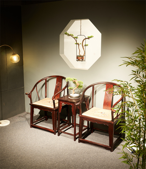 一方圈椅,將曲直與方圓兩種截然不同的美感糅于一體,展現(xiàn)出中國傳統(tǒng)線條藝術(shù)的精髓。明代圈椅造型優(yōu)美,線條流暢,與書法藝術(shù)有著異曲同工之妙,同時(shí)融入了中國潑墨寫意畫的手法,抽象美產(chǎn)生的視覺效果深受現(xiàn)代人喜愛。
