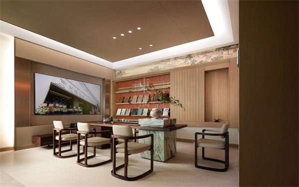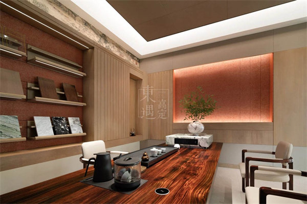 茶室設(shè)計巧妙地將高定茶臺與電器相結(jié)合