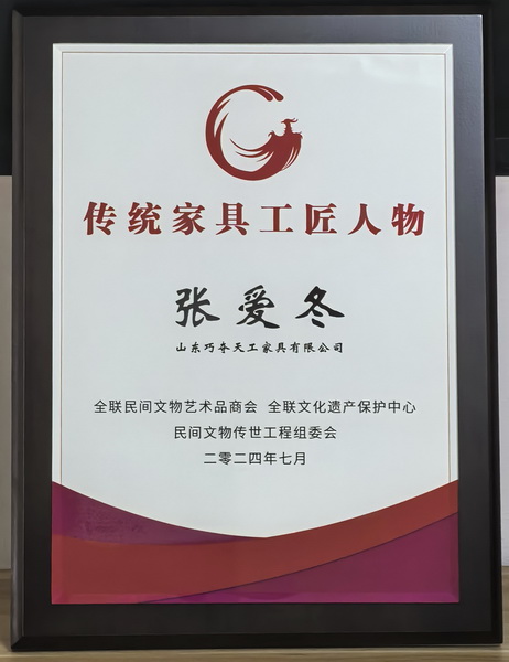 巧奪天工紅木創(chuàng)始人張愛(ài)冬大師被評(píng)為“傳統(tǒng)家具工匠人物”