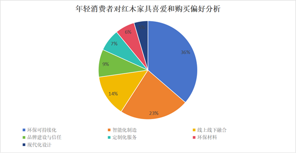 在年輕消費(fèi)者的選擇傾向中,環(huán)??沙掷m(xù)化占據(jù)了最高比例,高達(dá)40%,正如古人所言“天人合一,道法自然”,他們深刻認(rèn)識(shí)到人與自然和諧共生的重要性,傾向于選購(gòu)那些采用環(huán)保工藝、經(jīng)久耐用的紅木家具。