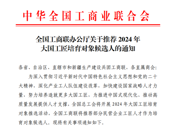 全國工商聯(lián)組織推進2024年大國工匠培育對象推選活動