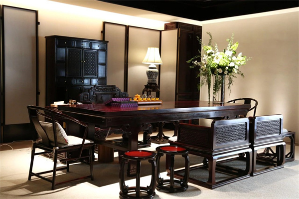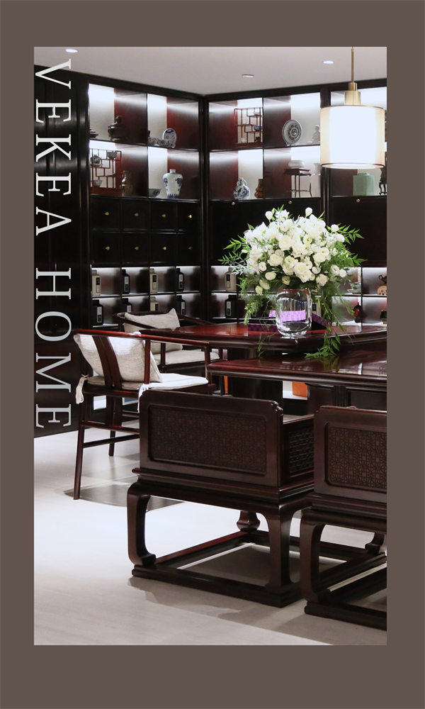 精雕寶座,尊貴雅致,與圈椅、圓墩共繞長桌,編織尊貴畫面。