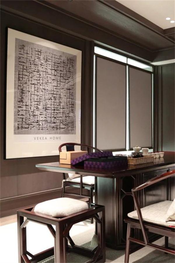 空間之內(nèi),干凈、簡單、純粹,沒有一絲雜質(zhì)。方桌,平整無瑕,圈椅與方凳,緊依長桌而設(shè),傳遞著心靈的親近與溫暖。