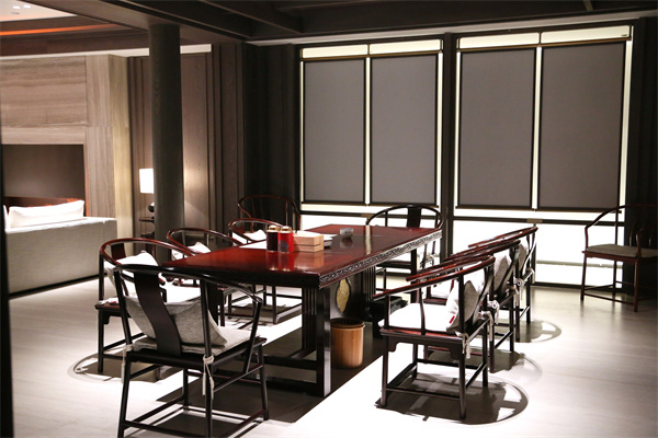 方正的茶空間,展開于黑白交織的商務(wù)殿堂。長桌與方桌相拼,既可飲茶暢談,亦可為專注辦公的領(lǐng)地。