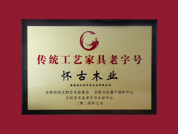 近日,這場高規(guī)格的評選活動榜單揭曉,福建省仙游懷古木業(yè)有限公司(簡稱懷古木業(yè))以其深厚的品牌歷史、精湛的產(chǎn)品工藝和卓越的市場口碑,躋身“十大傳統(tǒng)工藝家具老字號”之列,成為福建省傳統(tǒng)家具行業(yè)唯一上榜的企業(yè)字號。