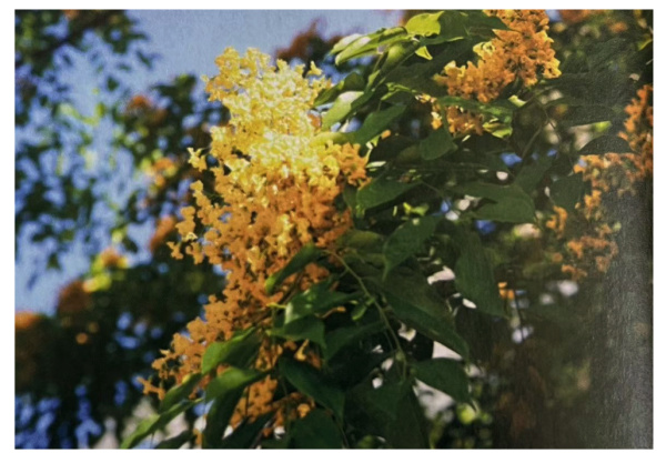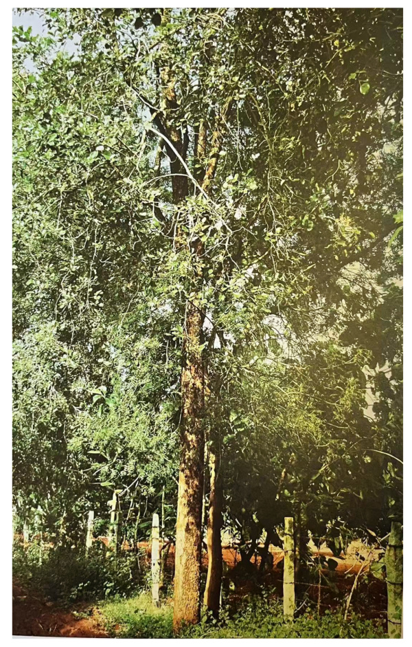 檀香紫檀“多生長于熱帶沿海岸風(fēng)景絕佳之區(qū)域。枝葉蒼郁,覆被天空,沉沉綠蔭……其葉為羽狀、復(fù)狀,各羽片呈卵圓形;其果實成熟則干燥,色褐而形扁單,其周圍有翅,使得因風(fēng)飛散,以播得其種子。此果實生于樹上,達(dá)多數(shù)時,遠(yuǎn)望恰如枯葉?!?孔慶萊《植物學(xué)大辭典》)