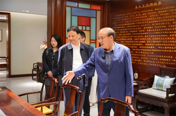 11月12日,浙江省二輕集團(tuán)黨委委員、副總經(jīng)理方力,浙江省工藝品進(jìn)出口有限公司黨委書記、董事長(zhǎng)王磊,浙江省工藝進(jìn)出口有限公司杭州文化藝術(shù)分公司總經(jīng)理李欽一行領(lǐng)導(dǎo)來(lái)東調(diào)研,首站蒞臨卓木王紅木家俱有限公司(以下簡(jiǎn)稱卓木王)進(jìn)行實(shí)地考察調(diào)研,東陽(yáng)市市場(chǎng)監(jiān)督管理局黨委副書記、副局長(zhǎng)吳晗興,東陽(yáng)市市場(chǎng)監(jiān)督管理局黨委委員、副局長(zhǎng)徐杭東陪同調(diào)研,卓木王董事長(zhǎng)杜承三接待領(lǐng)導(dǎo)一行。調(diào)研團(tuán)隊(duì)先后考察了卓木王園區(qū)及中式整裝博物館,各位領(lǐng)導(dǎo)對(duì)卓木王幾十年來(lái)所取得的成就及經(jīng)營(yíng)管理模式,給予充分肯定與贊揚(yáng)。