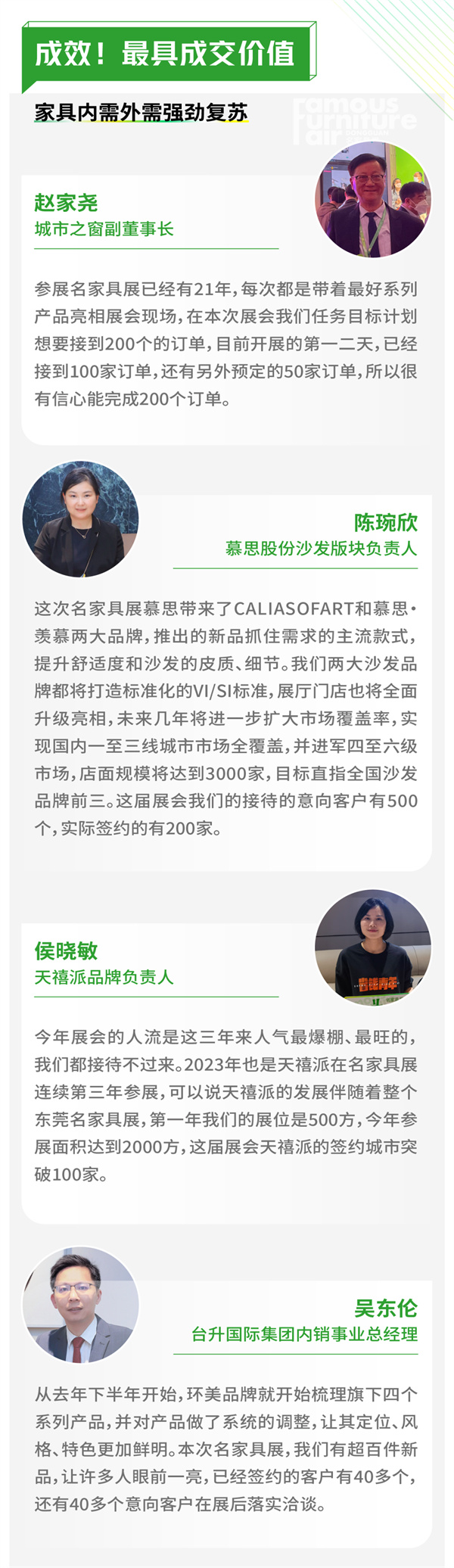 2023年3月,中國(guó)家具協(xié)會(huì)與東莞市人民政府共同建設(shè)世界級(jí)家具產(chǎn)業(yè)集群,深入實(shí)施工業(yè)制造、集群示范、展覽貿(mào)易、智慧管理、設(shè)計(jì)創(chuàng)新、跨境電商六都建設(shè),開(kāi)啟了名家具展的新一輪迭代,也為行業(yè)破局提供新的發(fā)展機(jī)遇。