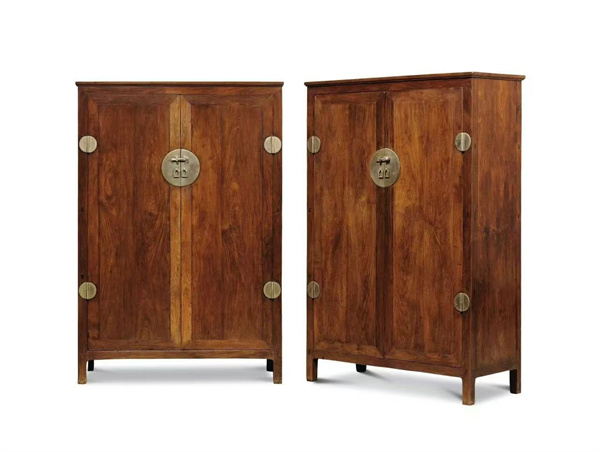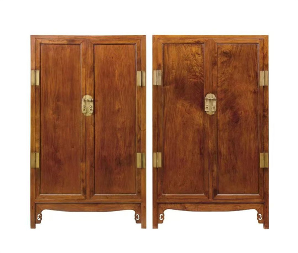 2015嘉德秋拍,清早期·黃花梨方腿圓角柜(成對),柜門板心也取自同一樹,但均為兩拼板。成交價:552萬元