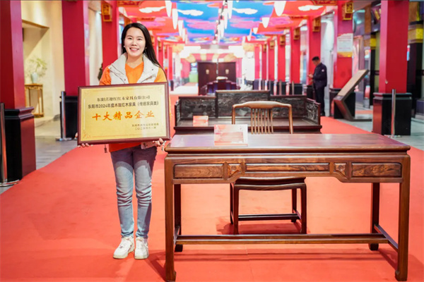 11月22日,本屆東博會(huì)中,東邦紅木憑借著精心制作的《四和如意圓角柜》,成功榮獲東陽(yáng)市2024年度木雕紅木家具(傳統(tǒng)家具類)“十大精品企業(yè)”。