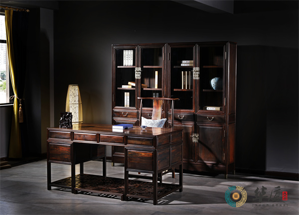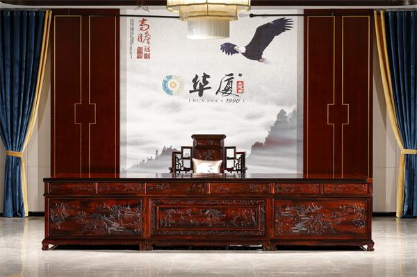 紅酸枝大班臺以其氣勢宏偉的姿態(tài)矗立于書房之中,臺面采用名貴的紅酸枝木材精心雕琢,山水亭臺樓閣圖案細(xì)膩如畫,栩栩如生,展現(xiàn)出非凡的藝術(shù)魅力。