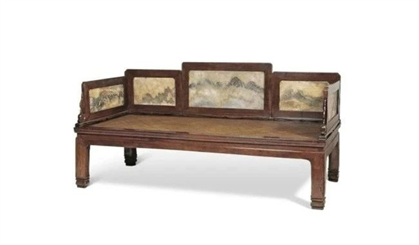Lot 1109 晚明 黃花梨五屏風(fēng)攢邊嵌理石圍子羅漢床