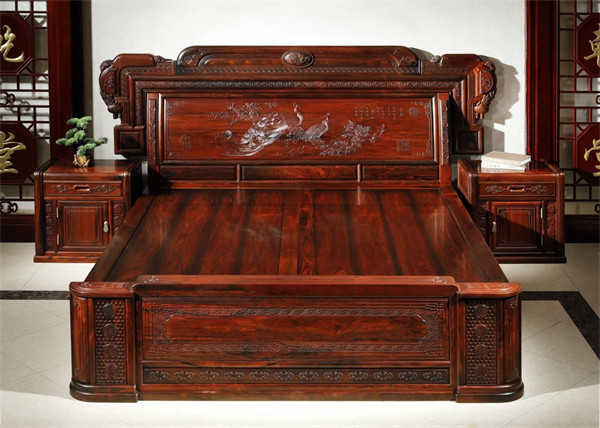 《國色天香大床》靠背板雕刻也正是風(fēng)華絕代的孔雀和牡丹相配,象征著愛情美滿,家庭幸福,吉祥富貴之意。在這張床上,每一夜都是對美好生活的向往與追求,每一次醒來都是對新一天的期待與憧憬。