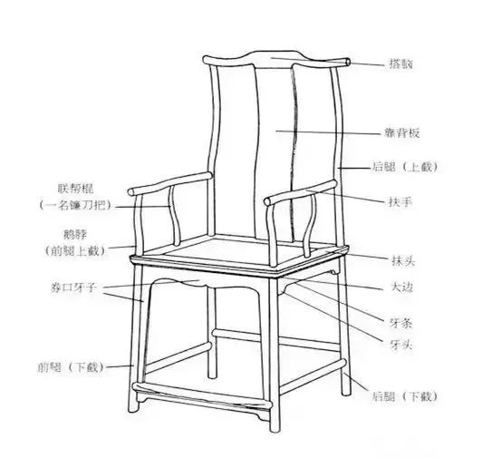 弓形搭腦:中部突起似弓形,線條流暢而富有變化。不出頭弓形搭腦與背板相接處為直線形,突起處明顯粗實(shí);