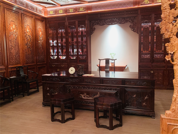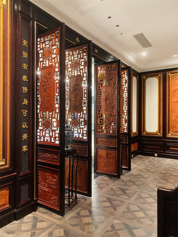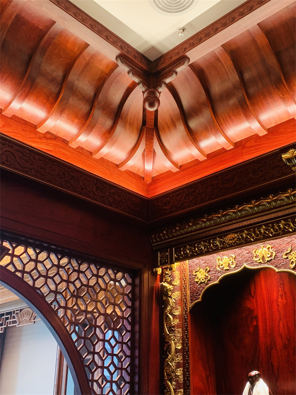 墻面、門窗、藻井以及隔斷等每一處細(xì)節(jié)都經(jīng)過(guò)精心設(shè)計(jì)與雕琢,不僅展現(xiàn)了紅木的自然美感,更融入了豐富的文化內(nèi)涵和藝術(shù)價(jià)值。