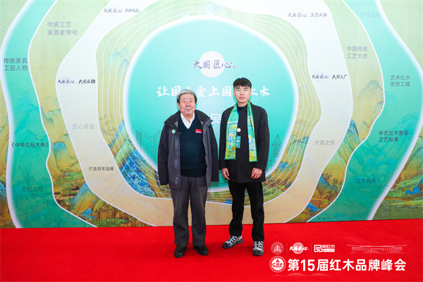 國(guó)祥紅木總經(jīng)理張宇杰(右)與中國(guó)林產(chǎn)工業(yè)協(xié)會(huì)紅木分會(huì)會(huì)長(zhǎng)吳勁松(左)合影