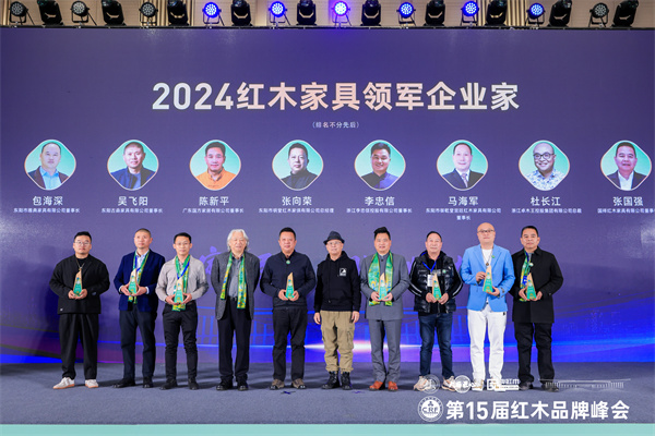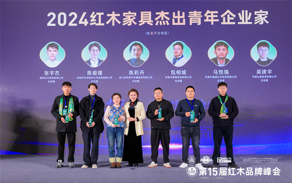 國(guó)祥紅木總經(jīng)理張宇杰(左一)榮獲“2024紅木家具杰出青年企業(yè)家”